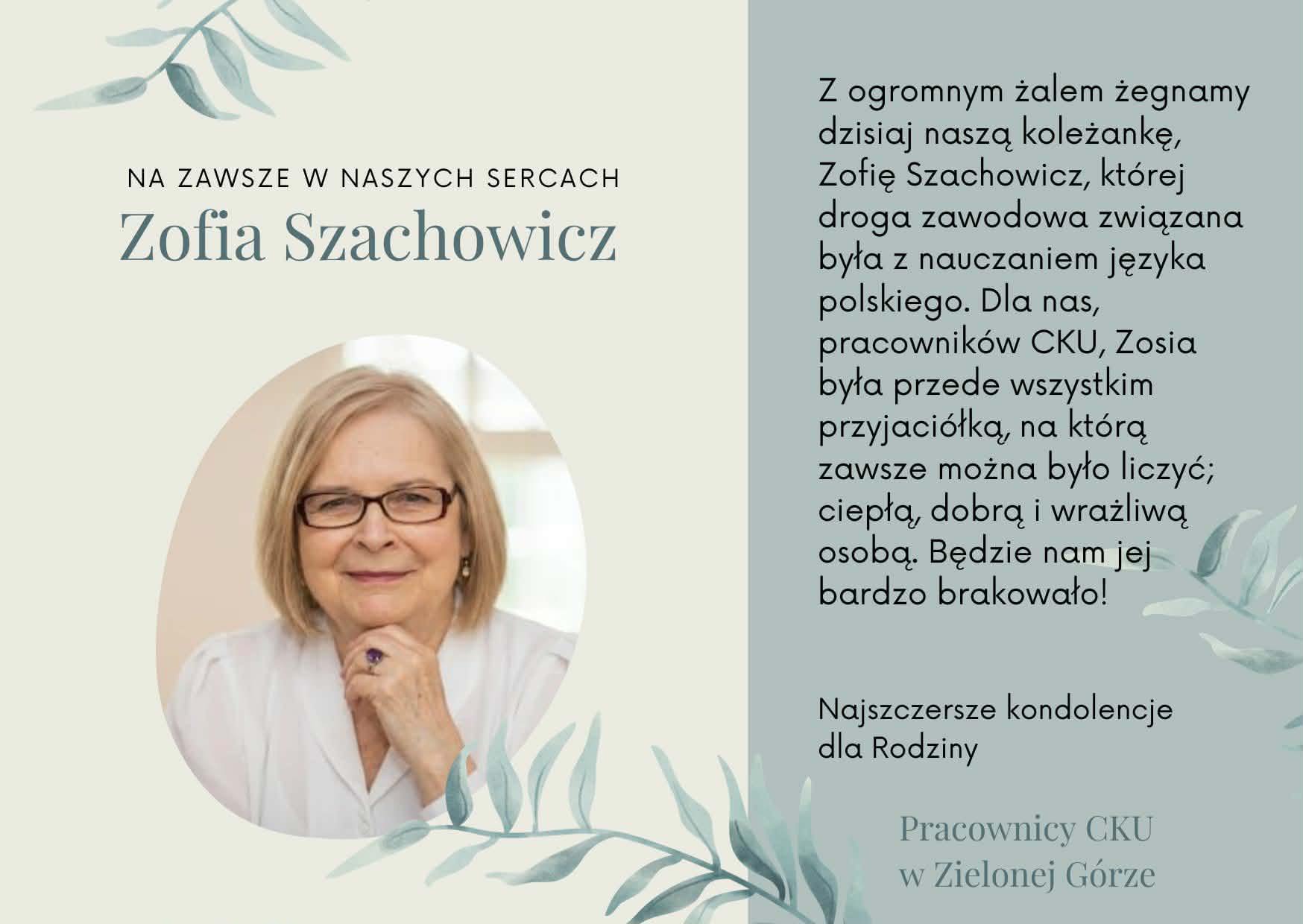 o śmierci naszej koleżanki Zosi Szachowicz.